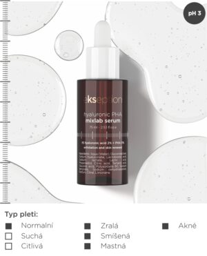 Aktivní sérum pro obnovu pokožky, produkující kontrolovanou a jemnou exfoliaci se 2% nezesítěné XS kyseliny hyaluronové a 5% PHA.
