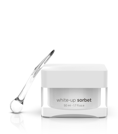 White-up sorbet je lehký a příjemný krém vyvinutý ke zjemňování pigmentací na pleti. Obsahuje kyselinu tranexamovou, melanostatin a kyselinu laktobionovou. Přípravek velmi účinně stimuluje obnovu pokožky a redukuje pigmentaci.
