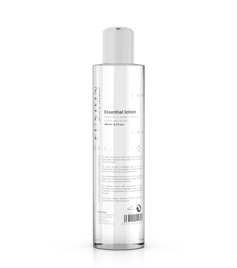 Ultra-osvěžující a hydratační pleťová voda pro dokončení čištění a pro aplikaci před krémy v péči o pleť. Essential lotion je gel s kyselinou hyaluronovou, který lze personalizovat přidáním meso roztoků. Jednoduše přidejte 5 až 10 ml meso roztoku, abyste vytvořili personalizovaný produkt na obličej, vlasy nebo tělo. Složení vyhovuje všem typům pleti a funguje v synergii s ošetřeními v kabině. Neobsahuje alkohol.